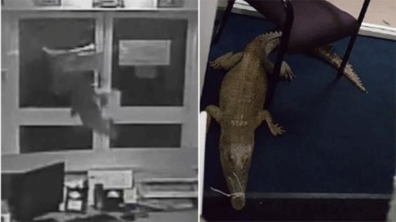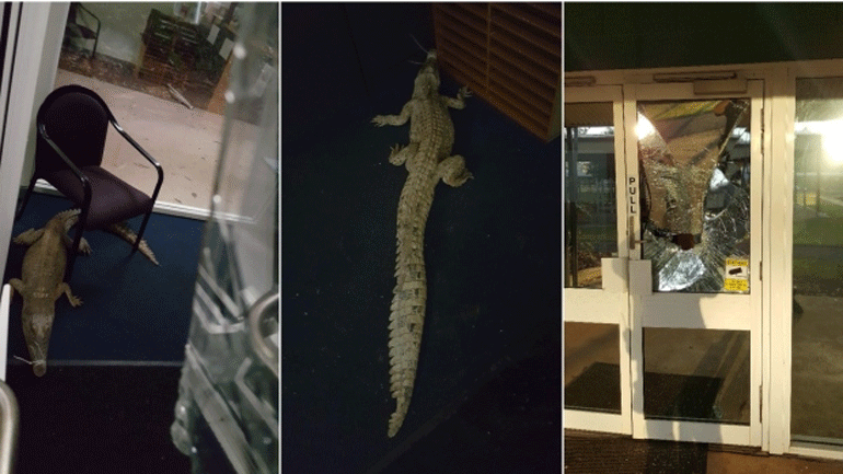 Ομάδα τεσσάρων ανδρών άφησαν ελεύθερους μέσα σε σχολείο τρεις υποσιτισμένους κροκόδειλους αλμυρού νερού με σκοπό να κλέψουν εξοπλισμό υπολογιστών.