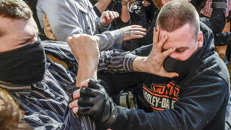 Περίπου 450 αστυνομικοί είχαν πάρει θέσεις έπειτα από τις βίαιες συγκρούσεις που είχαν σημειωθεί σε παρόμοια συγκέντρωση νωρίτερα εφέτος και χρησιμοποίησαν σπρέι πιπεριού προσπαθώντας να κρατήσουν τις δύο πλευρές μακριά τη μία από την άλλη.