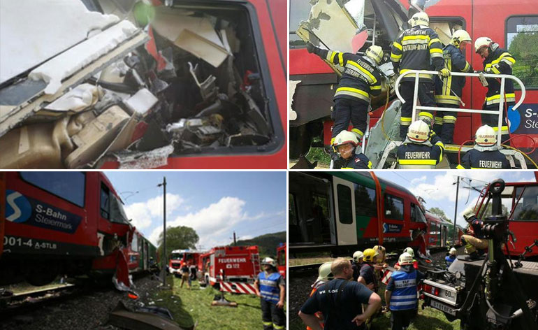 Δύο αμαξοστοιχίες συγκρούστηκαν μεταξύ τους στις 10.20 το πρωί της Τετάρτης, ώρα Ελλάδας, 30 χλμ. βόρεια του Γκρατς. Σύμφωνα με το Γαλλικό Πρακτορείο Ειδήσεων (AFP) ο οδηγός ενός εκ των δύο τρένων φαίνεται να παραβίασε φωτεινό σηματοδότη με αποτέλεσμα να συγκρουστεί με διερχόμενη αμαξοστοιχία. Επί τόπου έσπευσαν οχήματα της Πυροσβεστικής Υπηρεσίας και ασθενοφόρα. «Τραυματισμένοι επιβάτες βρίσκονταν πεσμένοι στο έδαφος μέσα στα βαγόνια. Ο οδηγός του τρένου είχε εγκλωβιστεί και απαιτήθηκε η συνδρομή πυροσβεστών. Η κατάστασή του ήταν κρίσιμη» τόνισε εκπρόσωπος της διαχειρίστριας εταιρείας σιδηροδρόμων.