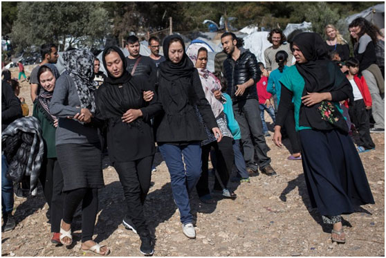 Η Tahereh S. ήταν υποβασταζόμενη από δύο γυναίκες όταν περνούσε στη Σάμο από την τουρκική ακτή. Οι δύο γιοι και ο σύζυγος της 26χρονης Αφγανής πνίγηκαν. Εκείνη όμως κι άλλοι από το ίδιο σκάφος σώθηκαν από την Ελληνική Ακτοφυλακή. Οι γυναίκες κατευθύνονται τώρα στη σκηνή στο κέντρο όπου θα διαβάσουν το Κοράνι και θα προσευχηθούν.