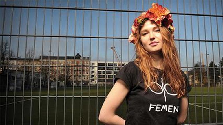 Το 2013 εισέβαλε τα Χριστούγεννα σε έναν καθεδρικό ναό στην Κολωνία. Φορούσε μόνο ένα σουτιέν και πάνω στο στήθος της είχε μια επιγραφή.