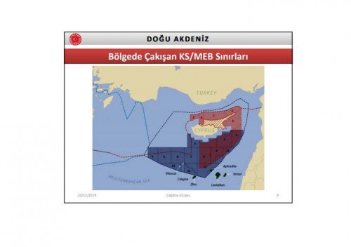 Οι πολιτικές και νομικές θέσεις της Τουρκίας εξηγεί με χάρτες τις θαλάσσιες ζώνες που διεκδικούν όλες οι πλευρές στην ανατ. Μεσόγειο, συμπεριλαμβανομένης της Ελλάδας, της Κυπριακής Δημοκρατίας αλλά και του ψευδοκράτους.