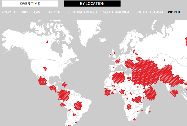 Σε ένα παραστατικό γράφημα του πρακτορείου Reuters, απεικονίζονται όλοι οι δημοσιογράφοι που έχασαν τη ζωή τους κατά την άσκηση του επαγγέλματός τους, από το 1992 μέχρι σήμερα. Ο χρήστης μπορεί να διαβάσει για τις συνθήκες του θανάτου του κάθε δημοσιογράφου, επιλέγοντας χρονολογικά ή τοπικά το γεγονός.