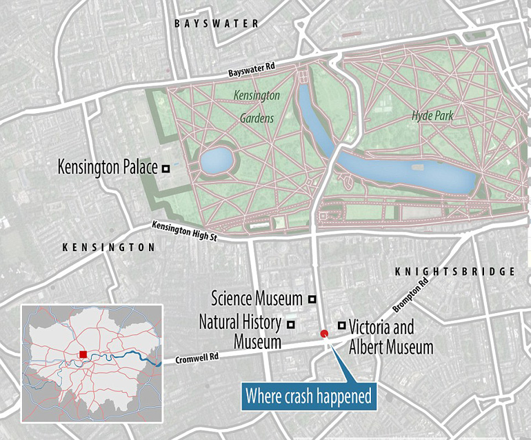 Αυτοκίνητο έπεσε πάνω σε πεζούς με αποτέλεσμα να υπάρχουν πολλοί τραυματίες, στις 2:20 τοπική ώρα, έξω από το Μουσείο Φυσικής Ιστορίας στο Νότιο Κένσινγκτον στα δυτικά του Λονδίνου . Το αυτοκίνητο ανέβηκε πάνω στο πεζοδρόμιο και παρέσυρε τους ανθρώπους.