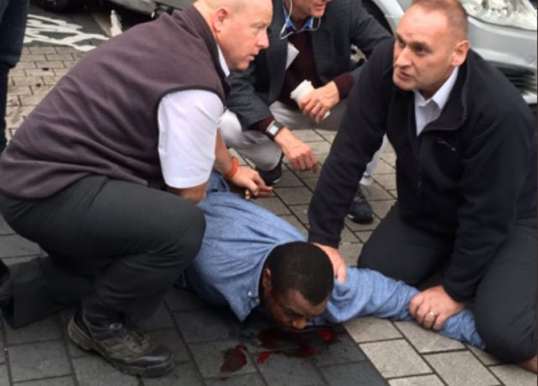 Δημοσιογράφος του BBC που βρίσκεται στο σημείο είπε ότι είδε ένα αυτοκίνητο σταματημένο διαγωνίως στον δρόμο, περικυκλωμένο από πλήθος ανθρώπων και έναν ή δύο ανθρώπους στο έδαφος. Σύμφωνα με την ίδια, αστυνομικοί της είπαν ότι τα τραύματά τους φαίνονται ήσσονος σημασίας.
