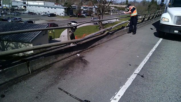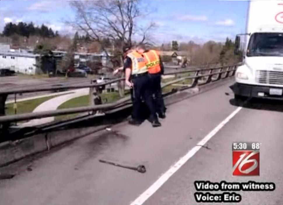 Μετά τη σύγκρουση η γυναίκα βγήκε από το αυτοκίνητό της, ενώ συνέχιζε να καίγεται και πήδηξε από μια γέφυρα και από ύψος 12 μέτρων, παρά τις προσπάθειες περαστικών να την αποτρέψουν.