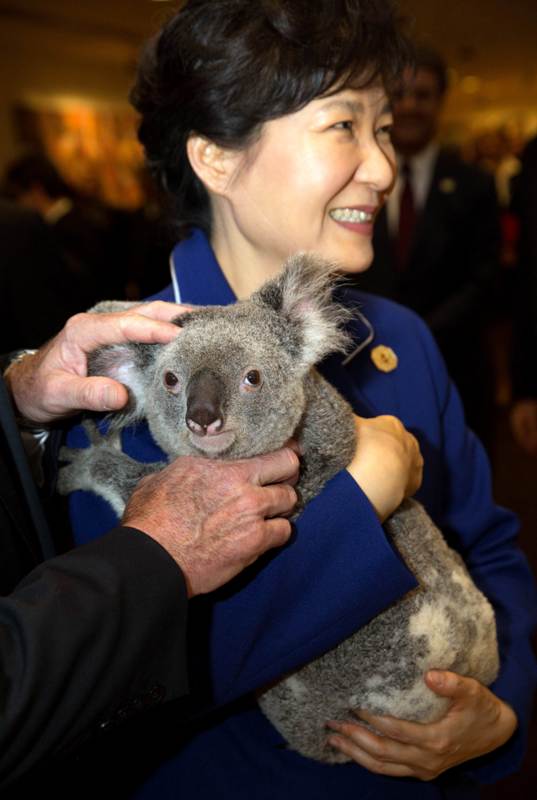 Οι περισσότεροι ηγέτες πόζαραν, ενώ αγκάλιαζαν ένα κοάλα, το ζώο-σήμα κατατεθέν της Αυστραλίας, όπου και διεξάγεται η σύνοδος.