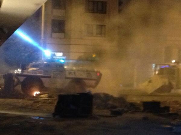 Αυτή την ώρα, σημειώνονται νέα επεισόδια μεταξύ των διαδηλωτών και της αστυνομίας η οποία κάνει χρήση χημικών και πλαστικών σφαιρών για να διαλύσει το πλήθος. Κάτι ανάλογο έκανε το Σάββατο και το πρωί της Κυριακής.