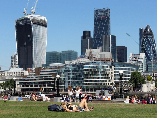 Η πιο ζεστή μέρα του εφετινού καλοκαιριού είναι η σημερινή για την Αγγλία, με αποτέλεσμα ο κόσμος να έχει κατακλύσει τις παραλίες, πάρκα και πλατείες.