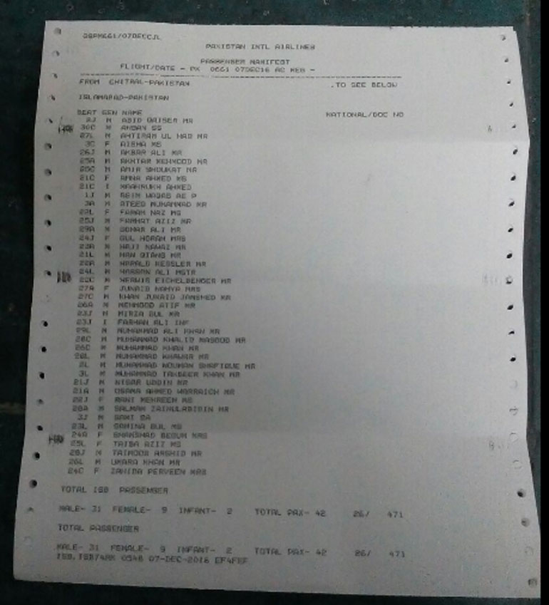 Σύμφωνα με το πρακτορείο Dunya News, στο αεροπλάνο επέβαινε μαζί με τη σύζυγό του ο διάσημος στις ισλαμικές χώρες τραγουδιστής Junaid Jamshed, ο οποίος έγινε στην πορεία ιεροκήρυκας.