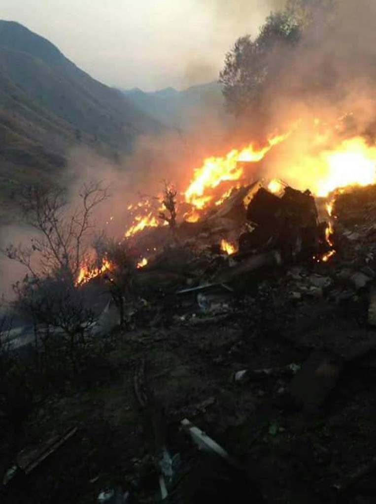Στο διαδίκτυο έχουν κυκλοφορήσει φωτογραφίες και βίντεο από το σημείο της συντριβής, στις οποίες φαίνονται φλόγες και συντρίμμια.