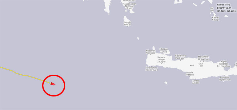 To ιρανικό δεξαμενόπλοιο Adrian Darya1, βρισκόταν στις 11.32 το πρωί της Δευτέρας, στις πύλες της ανατολικής Μεσογείου, με πορεία νότια της Κρήτης και κατεύθυνση προς τις βορειο-αφρικανικές ακτές της Λιβύης ή της Αλεξάνδρειας αλλά πιθανώς και των ακτών του Λιβάνου ή της Συρίας. Η ταχύτητά του ήταν της τάξης των 8,2 ναυτικών μιλίων της ώρα και η απόστασή του νοτίως της Γαύδου στα 210 ναυτικά μίλια.
