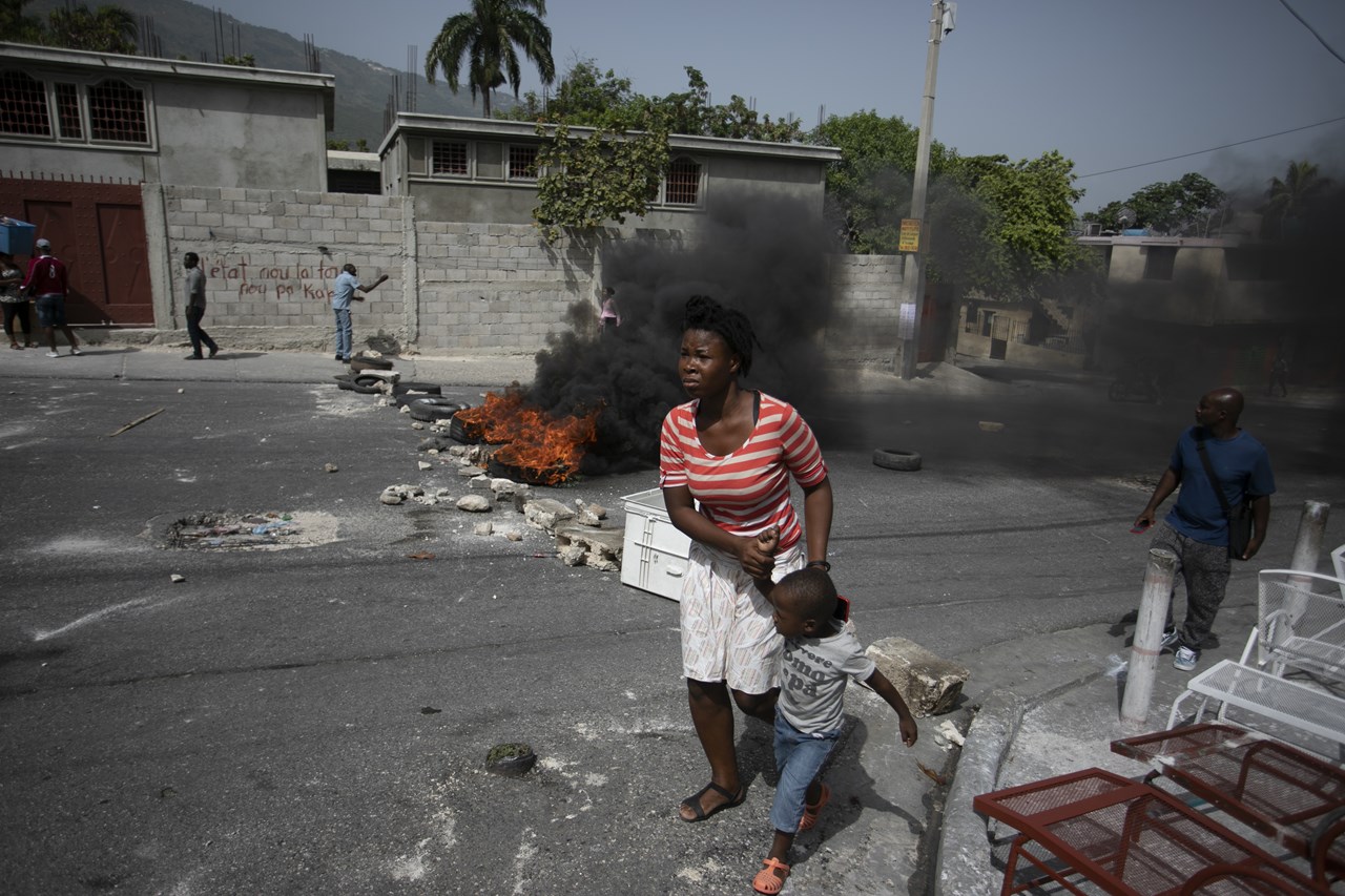 Οι κύριες οδικές αρτηρίες της αϊτινής πρωτεύουσας παραμένουν αποκλεισμένες από διαδηλωτές που στήνουν οδοφράγματα και καίνε λάστιχα.