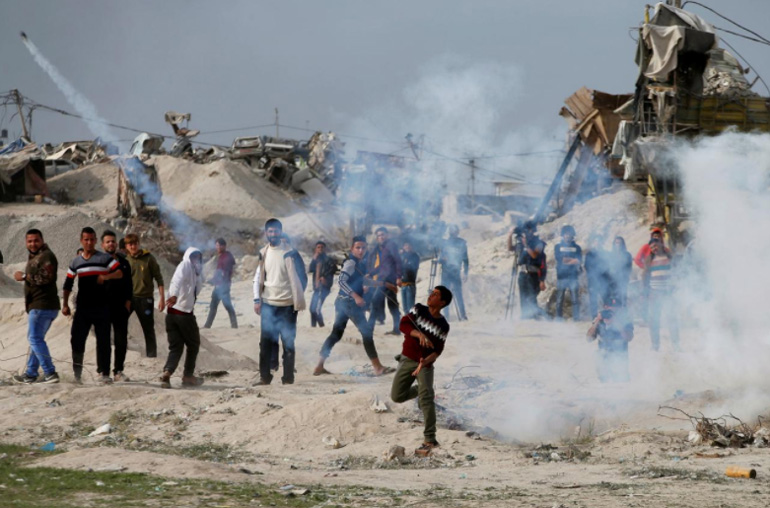 Τουλάχιστον πέντε Παλαιστίνιοι τραυματίστηκαν από πραγματικές σφαίρες, σύμφωνα με τον Ερυθρό Σταυρό, που δήλωσε επίσης ότι περιέθαλψε δεκάδες ανθρώπους.