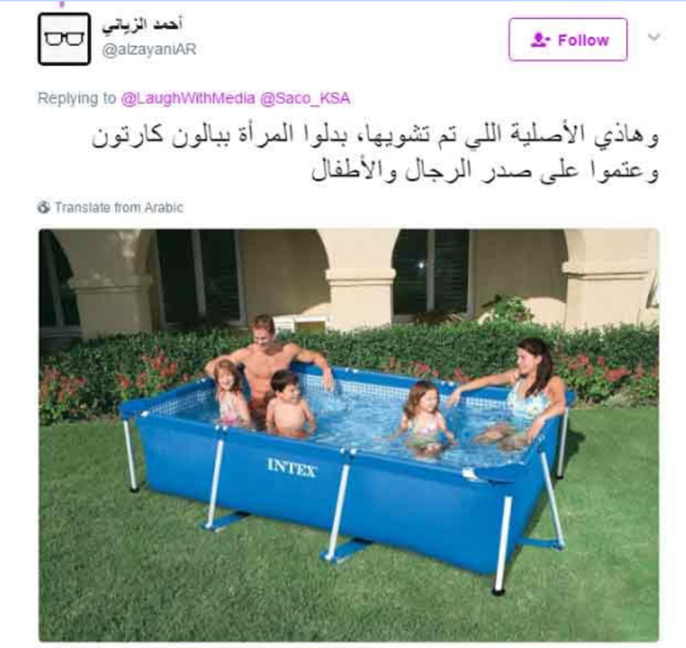 Η διαφήμιση για μια φορητή πισίνα, με αυτή την φωτογραφία, αποσύρθηκε, επειδή έθιγε τα «χρηστά ήθη» του προσηλωμένου στις αυστηρότερες επιταγές της Σαρία που ακολουθεί η διακυβέρνηση στη Σαουδική Αραβία.