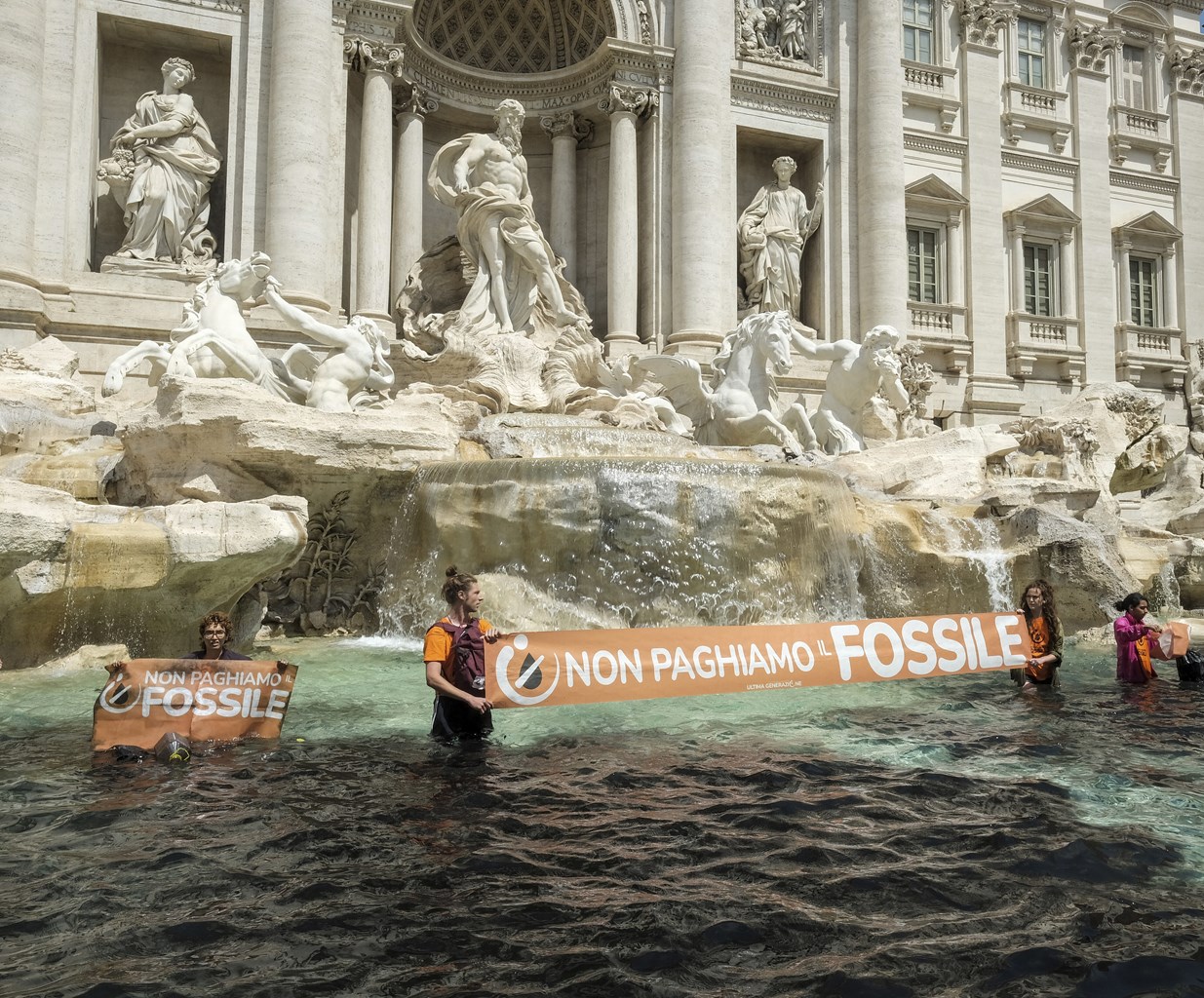 Οι ακτιβιστές της «Τελευταίας Γενιάς» έβαψαν στα μαύρα τη Φοντάνα ντι Τρέβι της Ρώμης με ένα υγρό άνθρακα φυτικής προέλευσης. Ο όμιλος ισχυρίζεται ότι οι συνεχείς επενδύσεις σε ορυκτά καύσιμα συνδέονται άμεσα με τις καταστροφικές πλημμύρες που έχουν ρημάξει τη βόρεια Ιταλία.