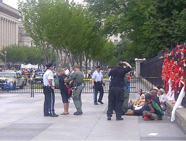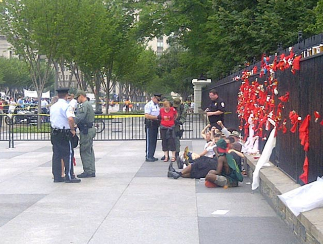 Η αστυνομία είχε υψώσει έναν φράχτη, ώστε να εμποδίσει τους ακτιβιστές να πλησιάσουν στον Λευκό Οίκο, όμως εκείνοι το είδαν ως ευκαιρία για να κρεμάσουν σε αυτόν χρήματα, μπουκάλια χαπιών συνταγών και κόκκινες κορδέλες- σύμβολο της μάχης κατά του ιού του ΗIV στο φράχτη.