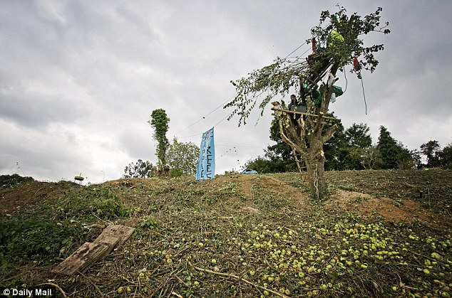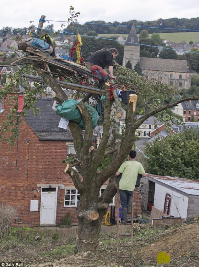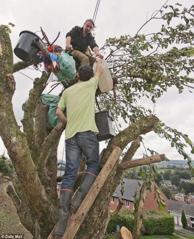 Ο οικολόγος, Rowan Burrough, από το Gloucestershire της Βρετανίας επέλεξε να ζει πάνω σε ένα υπεραιωνόβιο δέντρο προκειμένου να αποτρέψει την κοπή του.