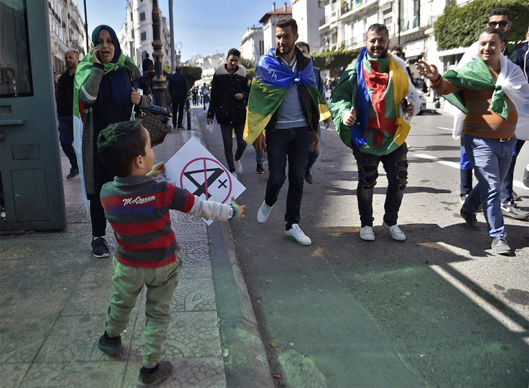 Άνδρες, γυναίκες και παιδιά ξεκίνησαν πορεία τις πρώτες απογευματινές ώρες, σε γιορτινή ατμόσφαιρα, στους δρόμους και στα δρομάκια του κέντρου της πρωτεύουσας, γύρω από τη διασταύρωση του Μεγάλου Ταχυδρομείου, εμβληματικού κτηρίου στο κέντρο του Αλγερίου, και το πλήθος εξακολουθεί να συρρέει εκεί.