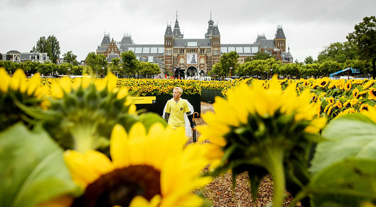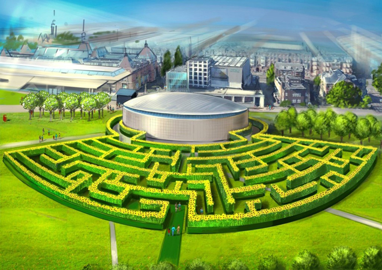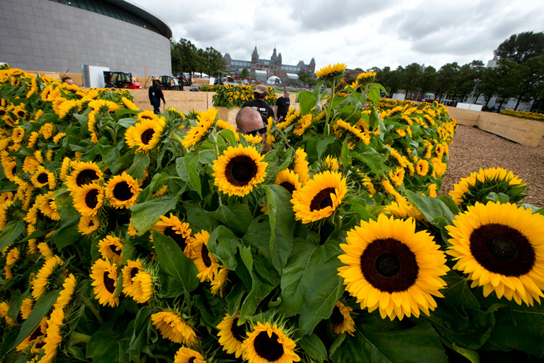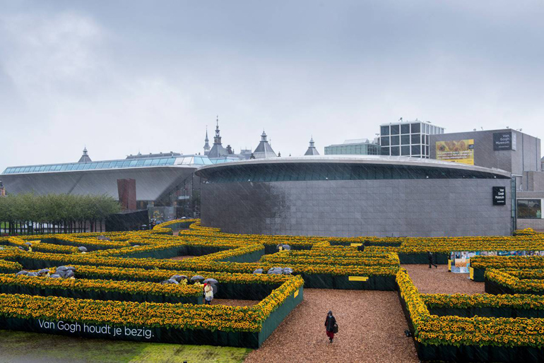 Ένας λαβύρινθος φτιαγμένος από 125.000 ηλιοτρόπια στήθηκε στη Museumplein -ή αλλιώς Πλατεία Μουσείου- του Άμστερνταμ, με αφορμή τα εγκαίνια της νέας αίθουσας υποδοχής του Μουσείου Βαν Γκογκ αλλά και τη συμπλήρωση 125 χρόνων (τον Ιούλιο) από τον θάνατο του καλλιτέχνη.