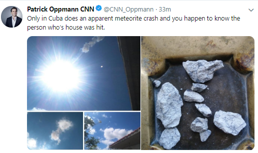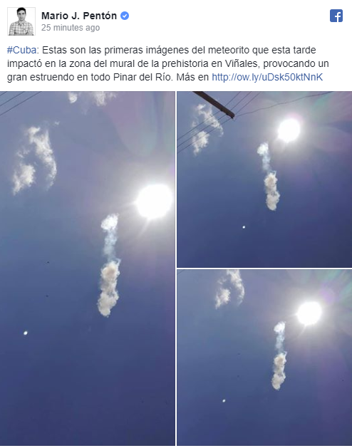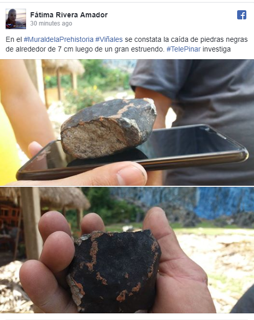Πολυάριθμοι Κουβανοί μοιράσθηκαν στα μέσα κοινωνικής δικτύωσης εικόνες και βίντεο από την πτώση του μετεωρίτη που σημειώθηκε γύρω στις 14:00 (τοπική ώρα, 19:00 ώρα Ελλάδας) και συνοδεύθηκε από λάμψη. Δημοσιογράφοι του τοπικού τηλεοπτικού δικτύο Telepinar δημοσιοποίησαν φωτογραφίες που δείχνουν μαύρους βράχους μεγέθους γροθιάς, οι οποίοι έπεσαν στην τουριστική πόλη Βινιάλες.