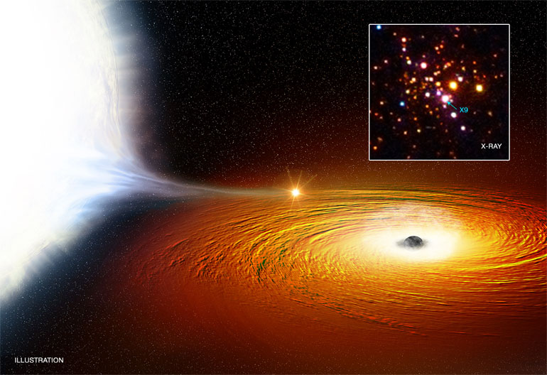 Σύμφωνα με τις εκτιμήσεις των επιστημόνων, το Χ9 περιλαμβάνει ένα άστρο λευκό νάνο, που κινείται γύρω από τη μαύρη τρύπα σε απόσταση μόλις δυόμισι φορές την απόσταση Γης-Σελήνης.