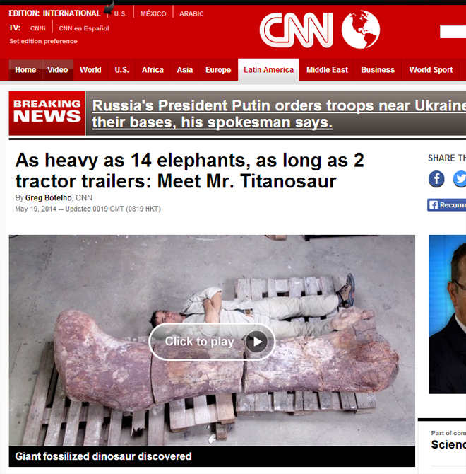 Οι επιστήμονες κάνουν λόγο για ένα νέο είδος «τιτανόσαυρου», ενός γιγαντιαίου φυτοφάγου, που εντοπίζεται στα τέλη της κρητιδικής περιόδου, δηλαδή πριν από περίπου 95-100 εκατομμύρια χρόνια.