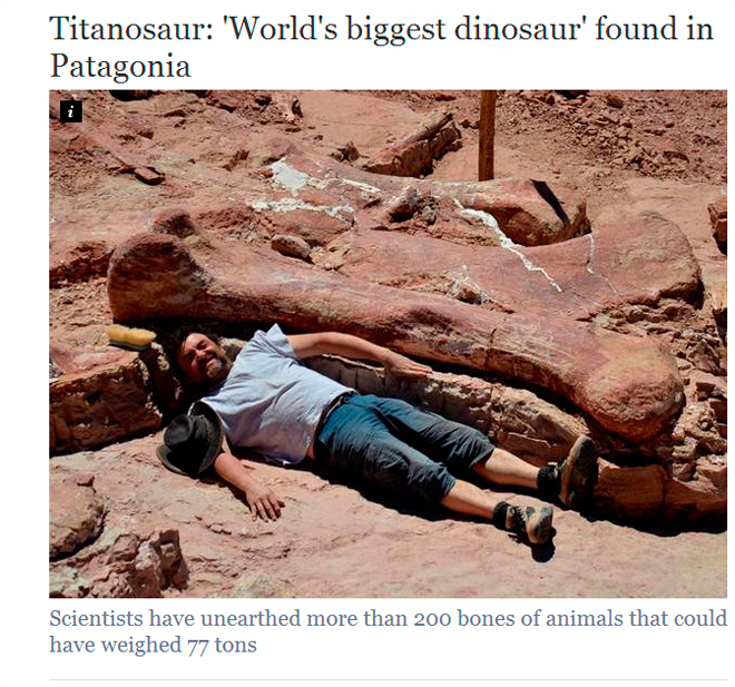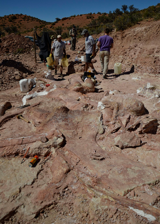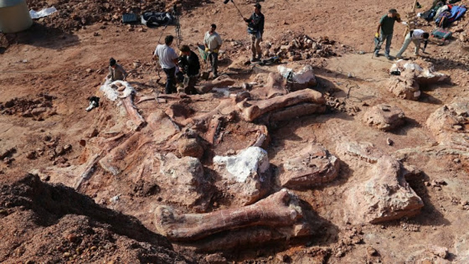 Παλαιοντολόγοι στην Αργεντινή ανακάλυψαν τα απολιθωμένα οστά του μεγαλύτερου δεινοσαύρου που έχει πατήσει το πόδι του στη Γη.