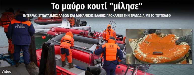 «Ο δεύτερος καταγραφέας του Τουπόλεφ Tu-154 εντοπίστηκε και ανασύρθηκε» την Τετάρτη, ανέφερε ο ρωσικός στρατός, μια σημαντική ανακάλυψη προκειμένου να προσδιοριστούν τα αίτια της τραγωδίας που προκάλεσε τον θάνατο 92 ανθρώπων, από τους οποίους περισσότεροι από 60 ήταν μέλη της περίφημης χορωδίας του Κόκκινου Στρατού.