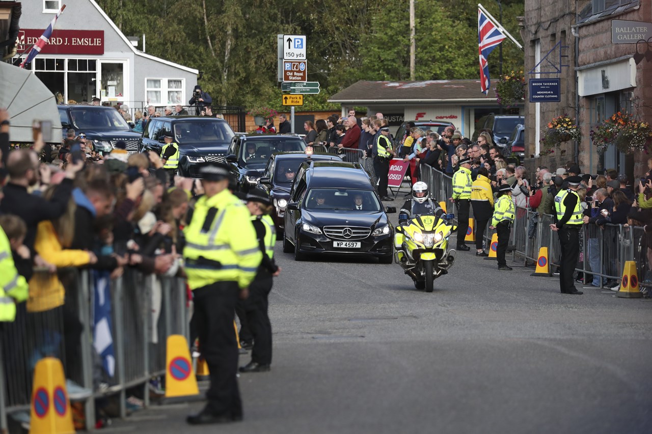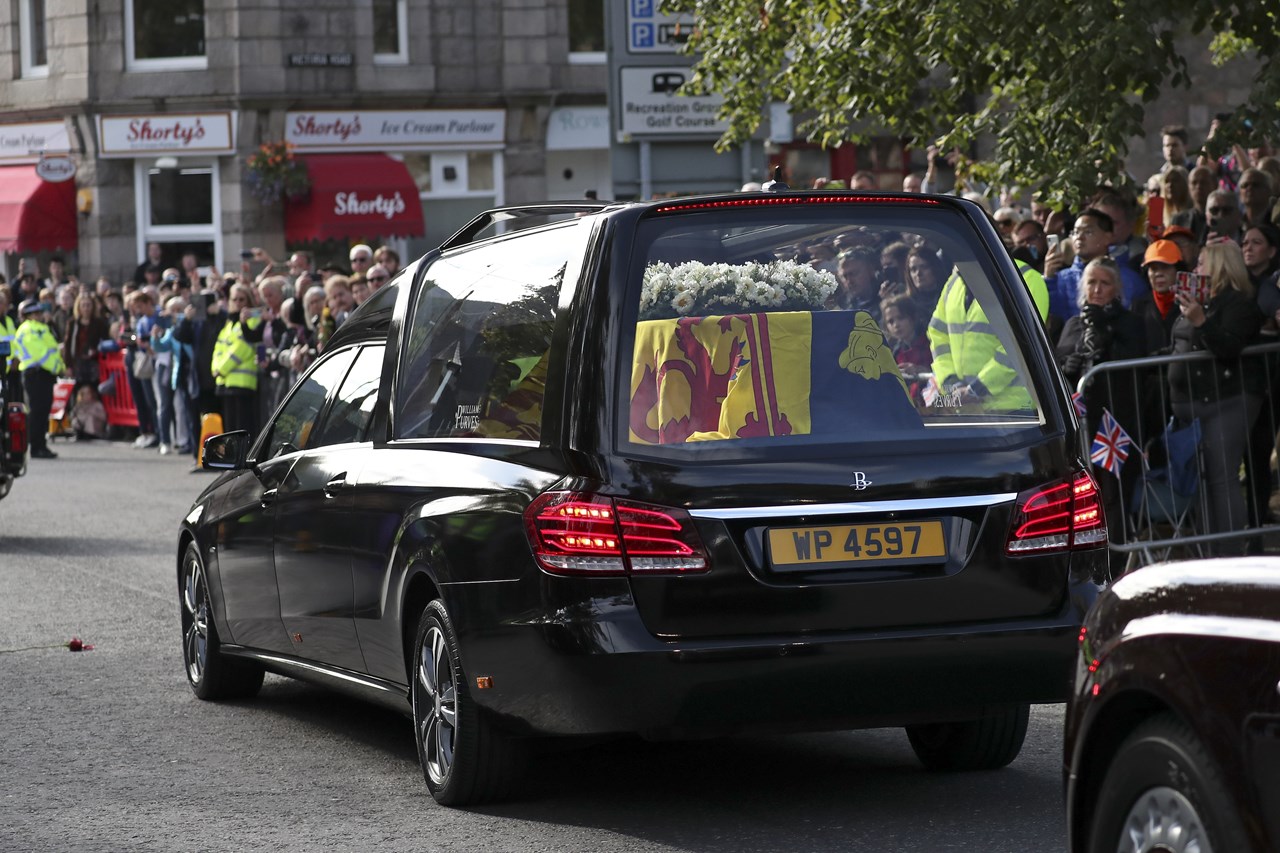 Το φέρετρο, καλυμμένο με τη σκωτσέζικη σημαία και με ένα μπουκέτο λουλούδια, πέρασε τις πύλες του Μπαλμόραλ λίγα λεπτά μετά τις 12.00 (ώρα Ελλάδας). Κατά μήκος της διαδρομής είχαν συγκεντρωθεί χιλιάδες άνθρωποι για να αποτίσουν φόρο τιμής στη βασίλισσα.