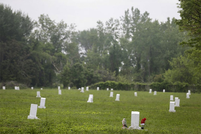 Στο νησί υπάρχουν μικρά, λευκά σημάδια που υποδεικνύουν την τοποθεσία των ομαδικών τάφων, σε κάθε έναν από τους οποίους βρίσκονται 150 ενήλικες ή 1.000 παιδιά.