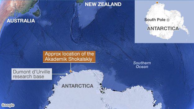 Οι 74 άνθρωποι που επιβαίνουν στο ρωσικό MV Akademik Shokalskiy έχουν εγκλωβιστεί από τις 24 Δεκεμβρίου, περίπου 2.800 χιλιόμετρα νότια του Χόμπαρτ της Τανζανίας.