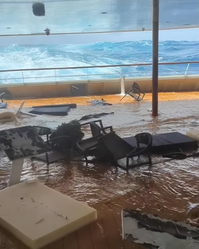 Άνεμοι ταχύτητας έως και 115 μίλια/ώρα έκαναν τη θάλασσα να… παραληρεί και έστειλαν κύματα ύψους 30 μέτρων τα οποία χτύπησαν το πολυτελές σκάφος κατά τη διάρκεια του επικίνδυνου ταξιδιού στις 2 Δεκεμβρίου 2023. Το βίντεο που τραβήχτηκε από το κατάστρωμα δείχνει πώς το σκάφος ανυψώθηκε στην κορυφή των τεράστιων κυμάτων.