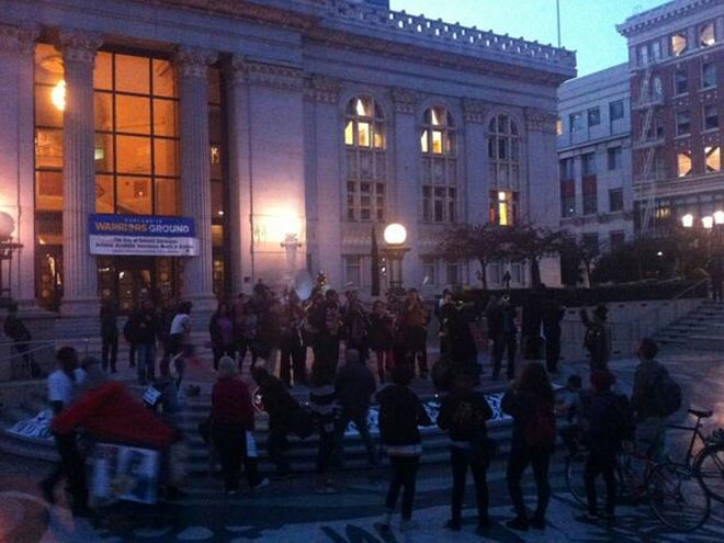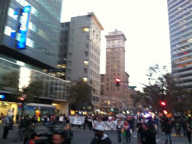 Η πορεία έφτασε μπροστά από το Δημαρχείο του Όκλαντ