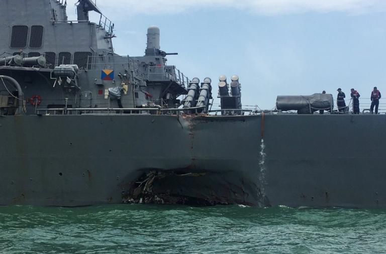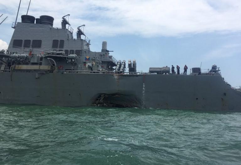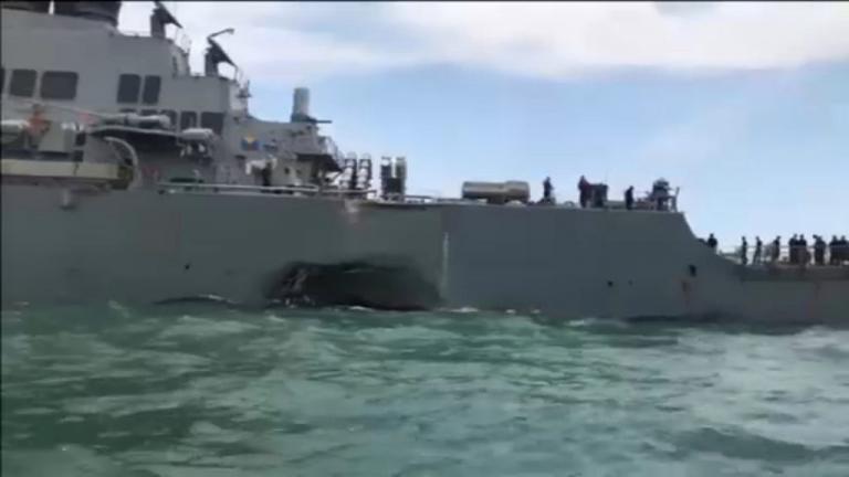 «Αρχικές εκτιμήσεις δείχνουν ότι το αντιτορπιλικό USS John S. McCain υπέστη ζημιά στην πίσω αριστερή πλευρά» τονίζει το Ναυτικό, προσθέτοντας ότι διεξάγεται επιχείρηση έρευνας και διάσωσης.