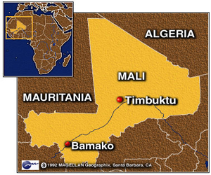 Θύμα απαγωγής έπεσε μια γυναίκα από την Ελβετία στο Τιμπουκτού στο βόρειο τμήμα του Μάλι, πόλη που παραμένει υπό τον έλεγχο των μαχητών Τουαρέγκ. Η Γεχία Ταντίνα, κάτοικος της πόλης, δήλωσε στο διεθνές ειδησεογραφικό πρακτορείο Reuters πως η γυναίκα ονομάζεται Βεατρίκη και απήχθη από ενόπλους που φορούσαν τουρμπάνια το απόγευμα της Κυριακής έξω από το σπίτι της.