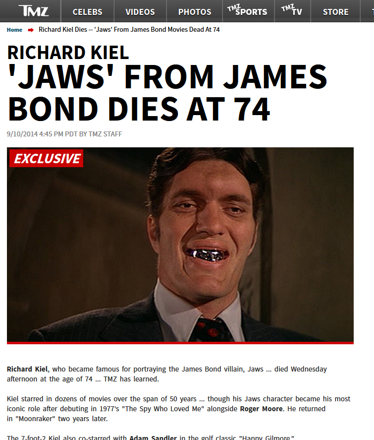 Έγινε ευρύτερα γνωστός μέσα από τον ρόλο του… Σαγόνια, του διάσημου κακού με τον οποίο βρέθηκε αντιμέτωπος ο Βρετανός κατάσκοπος Τζέιμς Μποντ. Η πρώτη του εμφάνιση στον συγκεκριμένο ρόλο ήταν το 1977 στην ταινία «Ο κατάσκοπος που με αγάπησε» και η δεύτερη στην ταινία «Moonraker» δύο χρόνια αργότερα. Εμβληματική θεωρείται ακόμα και σήμερα η σκηνή όπου τραυματίζει με τα δόντια του έναν καρχαρία, που ετοιμάζεται να του επιτεθεί.