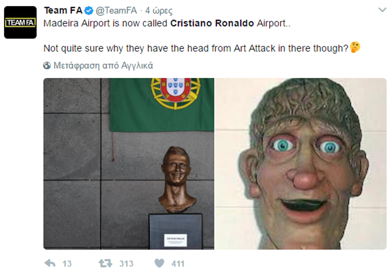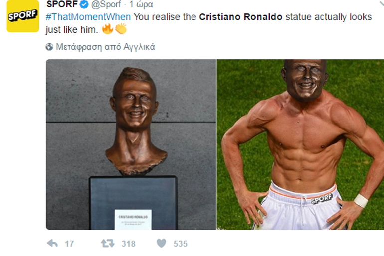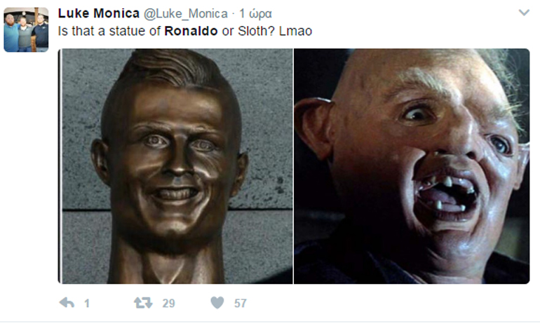 Την αποτυχημένη προτομή του Ρονάλντο που αποκαλύφθηκε στο αεροδρόμιο της Πορτογαλίας σχολιάζουν οι χρήστες του Twitter μη μπορώντας να κρύψουν τα αρνητικά συναισθήματα τα οποία τους δημιουργήθηκαν όταν την αντίκρισαν.