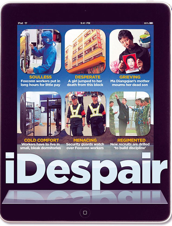 Το 2010, μετά από ένα κύμα αυτοκτονιών σε ένα εργοστάσιο της κατασκευάστριας εταιρείας Foxconn, στην Κίνα, η Apple κατηγορήθηκε ότι ανέχεται τις κακές συνθήκες εργασίας στα εργοστάσια των προμηθευτών της.