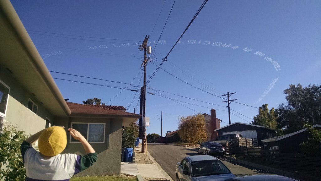 Πέντε αεροπλάνα πετούσαν για σχεδόν μία ώρα πάνω από την ετήσια παρέλαση των ρόδων στην Πασαντίνα στην Καλιφόρνια, σχηματίζοντας στον ουρανό φράσεις αποδοκιμασίας κατά του υποψηφίου για το χρίσμα των Ρεπουμπικάνων, Ντόναλν Τραμπ.