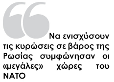 Στη συμφωνία ότι θα πρέπει να ενισχυθούν οι κυρώσεις σε βάρος της Ρωσίας για τη στάση που τηρεί στο θέμα της κρίσης στην ανατολική Ουκρανία κατέληξαν οι ηγέτες των «μεγάλων» χωρών του ΝΑΤΟ κατά τη σύνοδο κορυφής της Βορειοατλαντικής Συμμαχίας στο Νιούπορτ της Ουαλίας.