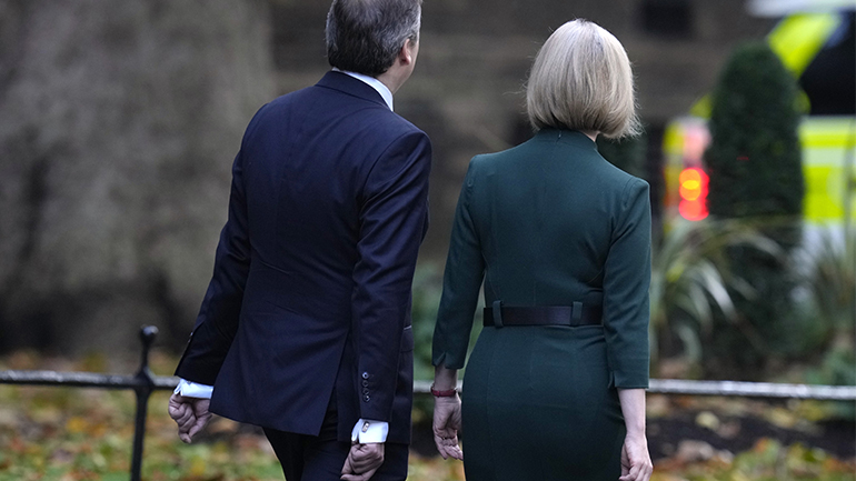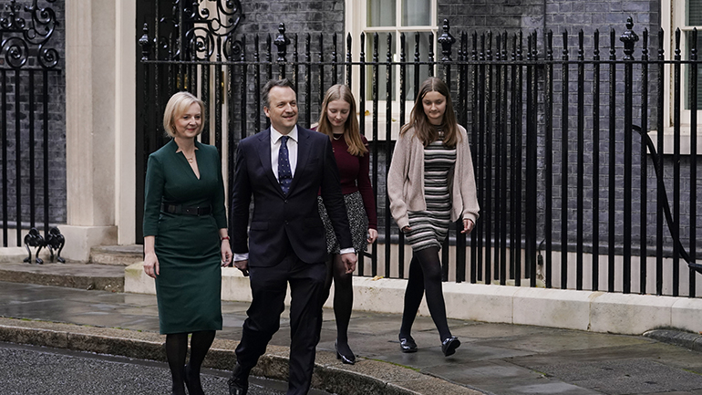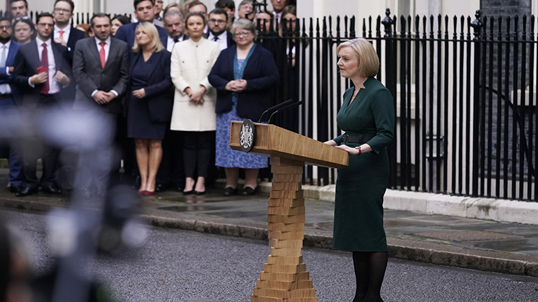 Η Λίζ Τρας πραγματοποίησε την αποχαιρετιστήρια ομιλία της στον αριθμό 10 της Ντάουνινγκ Στριτ, και εν συνεχεία μετέβη στα ανάκτορα του Μπάκινγκχαμ, προκειμένου υποβάλλει και τυπικά την παραίτησή της στον βασιλιά Κάρολο Γ’ του Ηνωμένου Βασιλείου.