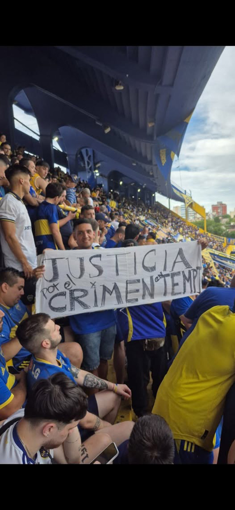 Πανό με το σύνθημα στα ισπανικά «Δικαιοσύνη για το έγκλημα στα Τέμπη», ύψωσαν οι οπαδοί της Μπόκα Τζούνιορς, στο «Μπομπονέρα», το γήπεδο της ομάδας του Μπουένος Άιρες.
