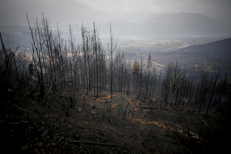 Οι φωτιές καίνε δασικές εκτάσεις στην Κορδιλιέρα των Άνδεων, περιμετρικά της λίμνης Πουέλο, μια περιοχή δημοφιλή για τους τουρίστες, στην επαρχία Τσουμπούτ.