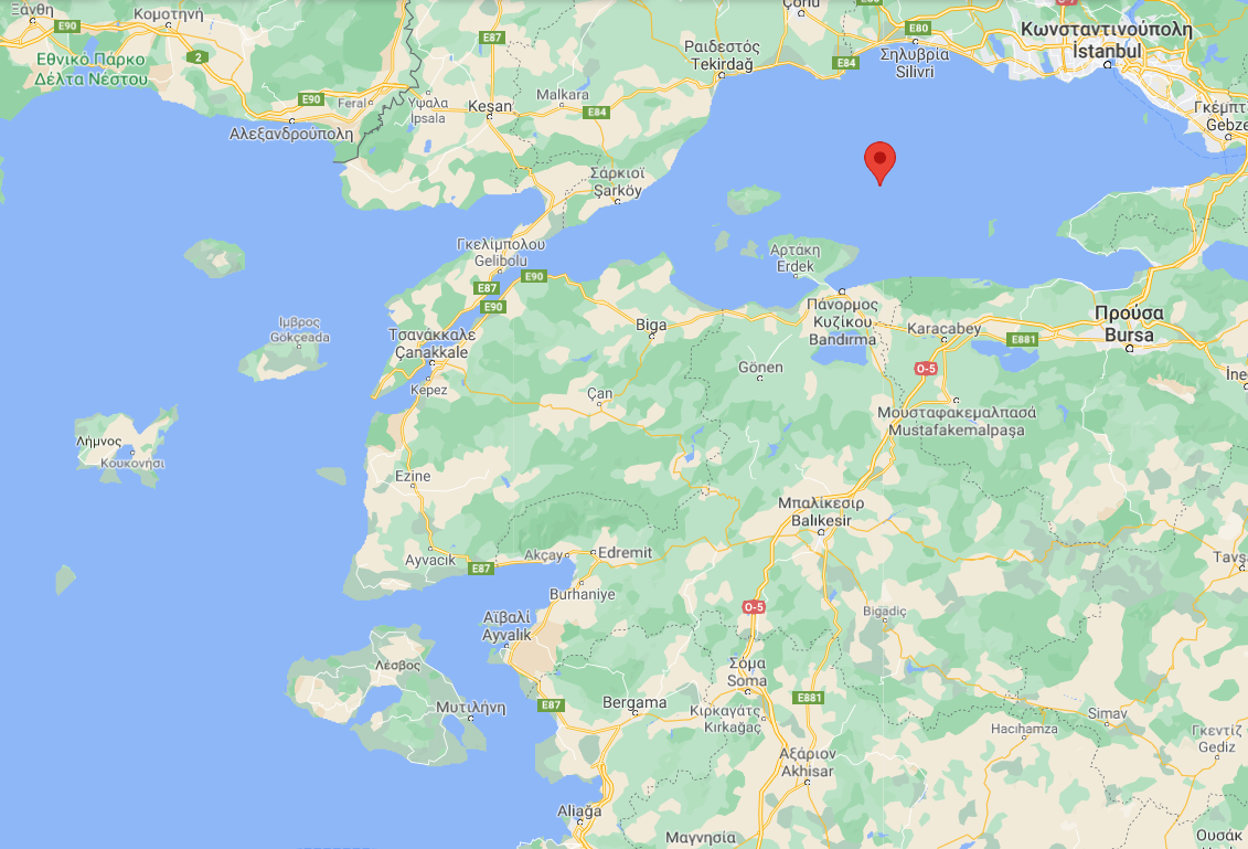 Η θάλασσα του Μαρμαρά στον χάρτη:
