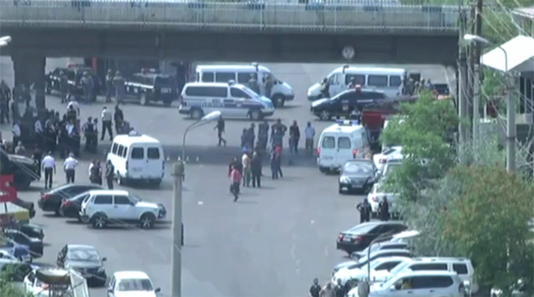 Συναγερμός σήμανε το πρωί της Κυριακής στην πρωτεύουσα της Αρμενίας, όταν ένοπλοι επιτέθηκαν κατά των κεντρικών γραφείων της αστυνομίας. Ένας νεκρός αστυνομικός και δεκάδες τραυματίες είναι ο μέχρι στιγμής απολογισμός των δραματικών γεγονότων που εκτυλίσσονται στο Έρεβαν.