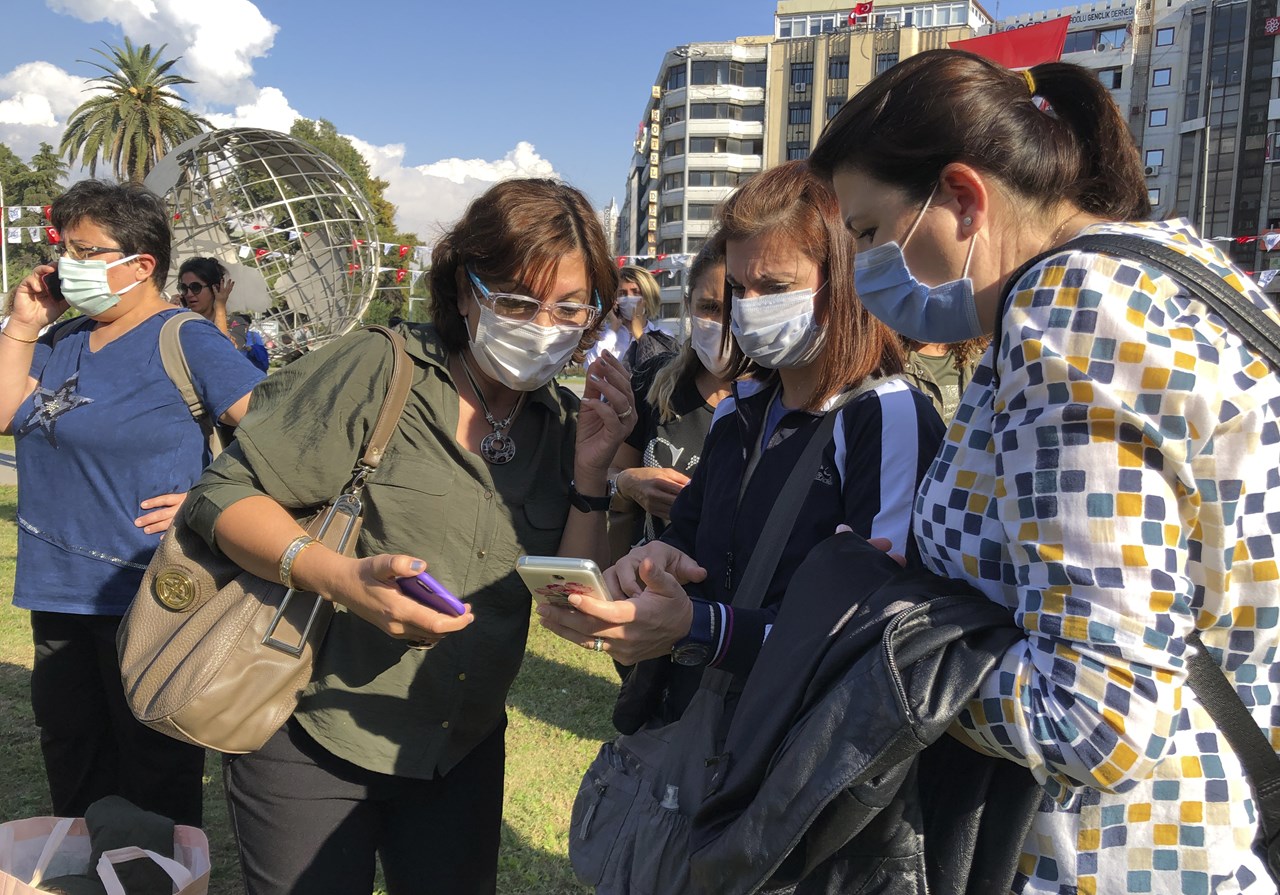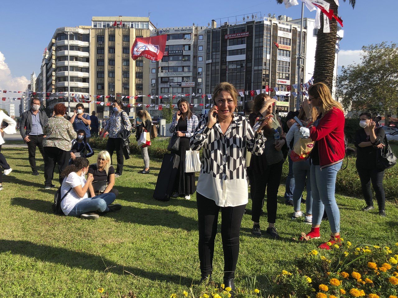 Δείτε φωτογραφίες από τους δρόμους της Σμύρνης, με τους πολίτες να έχουν βγει στους δρόμους -πολλοί από αυτούς με μάσκες λόγω της πανδημίας- έπειτα από την ισχυρότατη σεισμική δόνηση:
