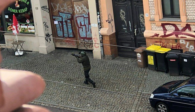 Ένα 24ωρο μετά την επίθεση με φορτηγό αυτοκίνητο που οδηγούσε Σύρος πρόσφυγας στην πόλη Λίμπουργκ της Γερμανίας, το μεσημέρι της Τετάρτης άγνωστος επιτέθηκε με υποπολυβόλο όπλο και μία χειροβομβίδα κατά της συναγωγής στην πόλη Χάλε προκαλώντας τον θάνατο σε δύο άτομα και τραυματίζοντας αρκετούς ακόμα.