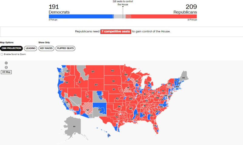 1) Η Βουλή των Αντιπροσώπων φαίνεται να επιστρέφει στον έλεγχο των Ρεπουμπλικανών, οι οποίοι έχουν εκλέξει μέχρι στιγμής 209 βουλευτές, έναντι 191 των Δημοκρατικών.