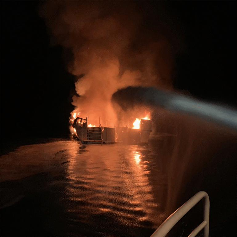 First pictures of deadly boat fire in Ventura county California. Official say 34 lost off the coast of Santa Cruz Island. pic.twitter.com/SzbU0WrzqF